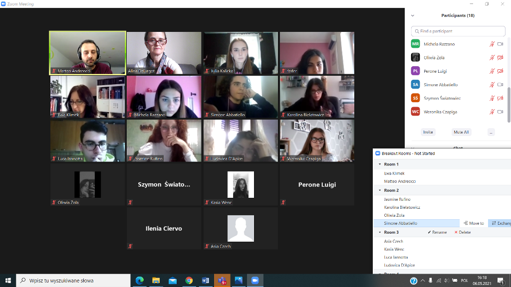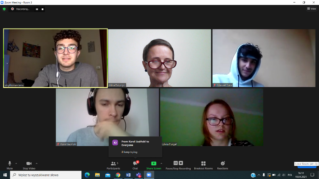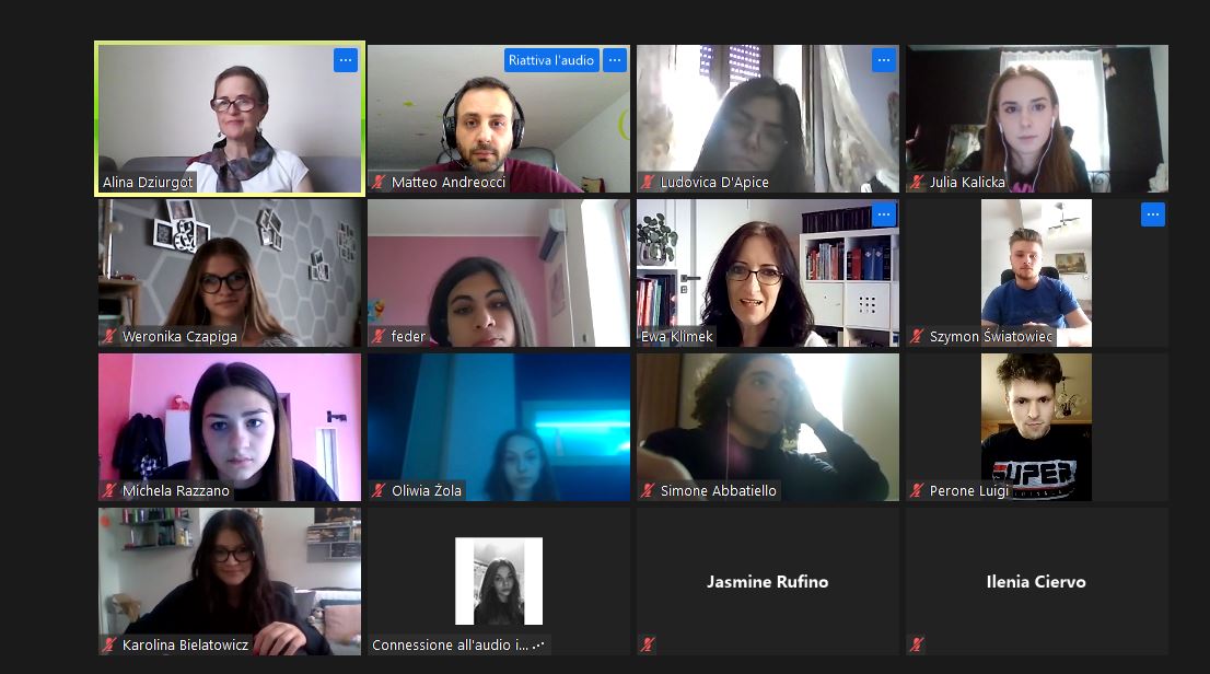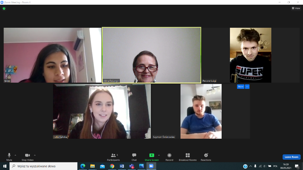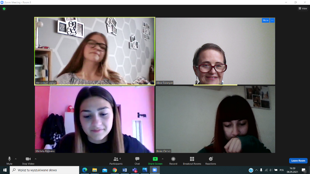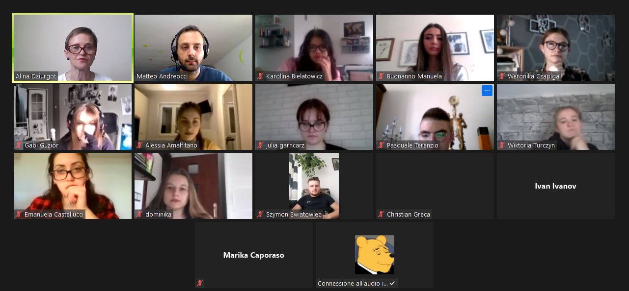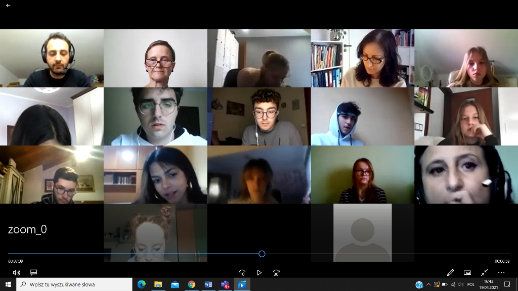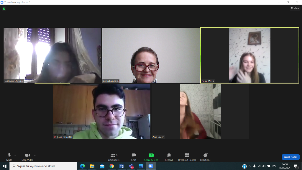 W dniu 19.04.2021 rozpoczęliśmy poznawaniem siebie. Nasi uczniowie cieszyli się na rozmowę z nowymi kolegami i koleżankami z Włoch. Pierwsze lody zostały przełamane, strach przed mówieniem po angielsku opanowany, więc tym łatwiej i przyjemniej się rozmawiało – o szkole, o zainteresowaniach, o aktualnej pogodzie we Włoszech i w Polsce i tym, co nas obecnie najbardziej dotyka, o covidzie.